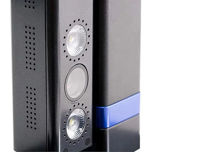 На верхнем плече у штатива есть сама камера для записи и 2 лампы для подсветки