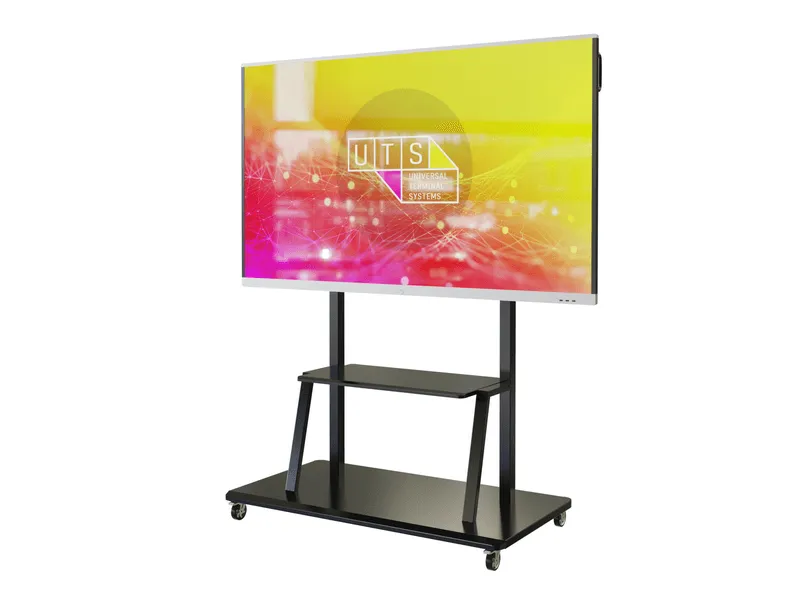 Стойка под интерактивную панель предназначена для панелей диагональю 65”, 75”, 86” и весом до 80 кг. Ее можно использовать вместе с панелями в рамках образовательных занятий, форумов или бизнес-конференций.