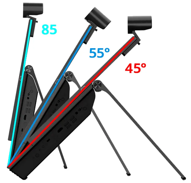 Экран может наклоняться на 45° и 180° и работать под таким углом даже стоя