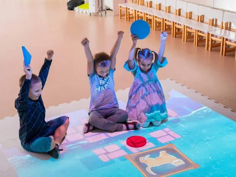 Система объединяет в себе интерактивный пол и занятия, состоящие из 139 игр, которые помогают детям развивать моторику, координацию движений, логическое мышление и навыки общения и взаимодействия.
