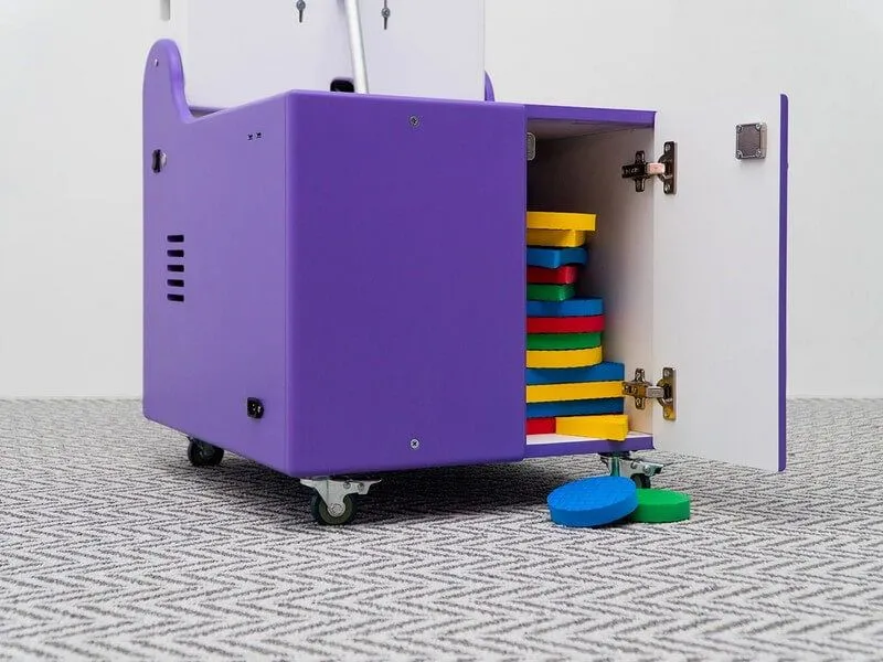 Интерактивный пол Magium подойдет для проведения занятий в разных помещениях в разное время: за счет колесиков его удобно перемещать из комнаты в комнату, а за счет складного механизма — хранить.