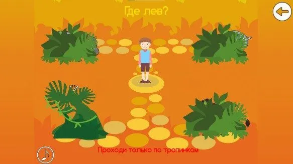 На экране выводится изображение листочка. Ребенок должен внимательно посмотреть на листочек и соотнести его с деревом. Для этого он должен удержать руку на выбранном дереве.