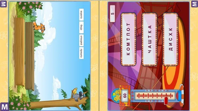 Кнопки управления игрой расположены в нижней части экрана. Когда на занятии используется интерактивная доска, то ребенку не придется тянуться вверх.
