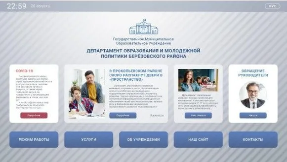 KIOSK INFO «Для госучреждений» незаменимо для объектов с высокой проходимостью. Посетители могут самостоятельно получить доступ к информации об учреждении, порядке оформления документов, услугах и режиме работы, а также просмотреть актуальные вакансии, новости и т.д. При необходимости пользователь может связаться с оператором через обратную связь.