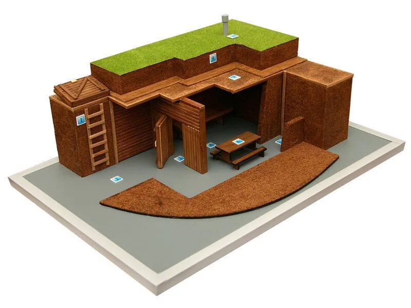 Макет предназначен для использования на занятиях ОБЖ и НВП для изучения защитного сооружения, используемого в области, где могут происходить боевые действия с использованием опасного оружия, включая оружие массового поражения.