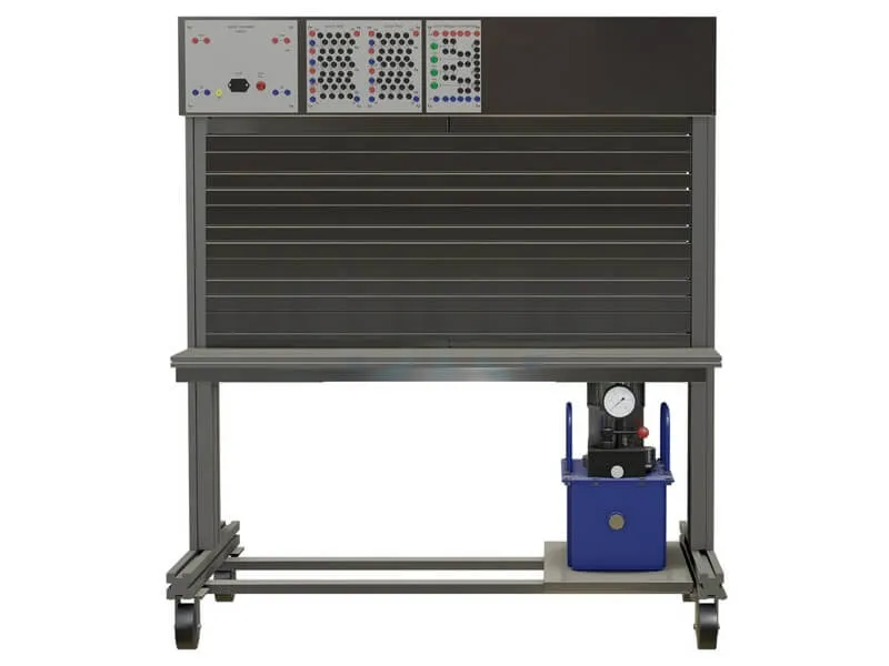 - Учебно-лабораторная установка представляет собой комплекс из модулей, секций, оборудования и деталей, включающий мобильное основание, монтажную панель, стойку для установки электрических блоков управления, гидравлические аппараты и другое оборудование