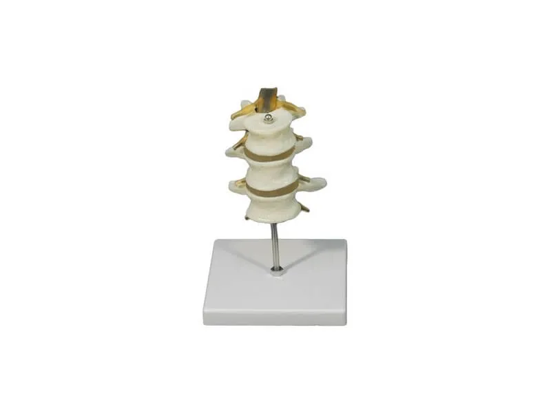 Модель демонстрирует поясничные позвонки L1-L3, межпозвонковые диски, спинномозговые нервы и спинной мозг. Легко закрепляется на подставке и снимается с неё. Модель разработана как демонстрационный материал к курсу анатомии в общеобразовательных школах, средних и высших медицинских учебных заведениях. Изготовлена из поливинилхлорида (ПВХ).