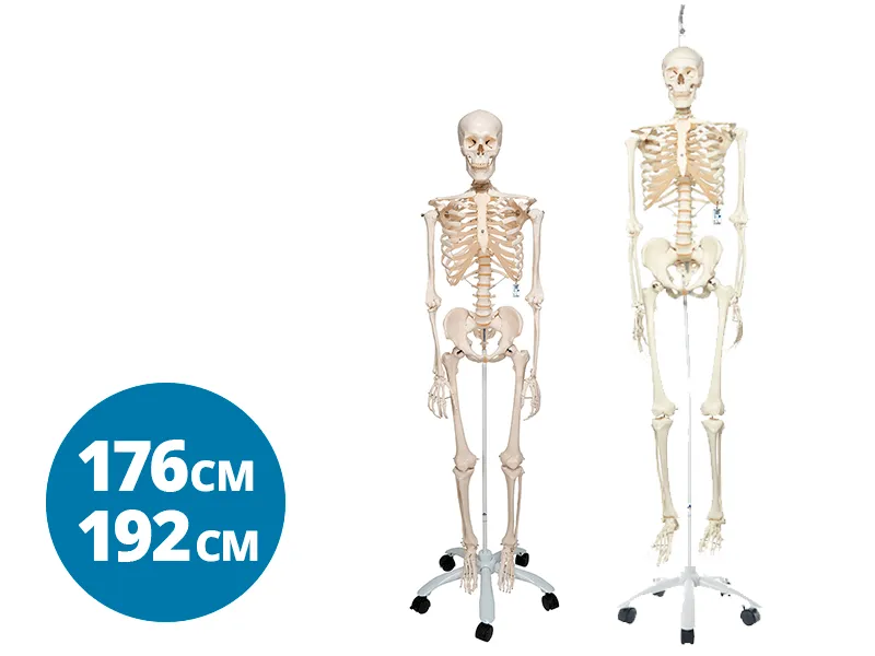 Полноростовая модель скелета человека Стэн поставляется в двух вариантах: на колесиках с тазовым креплением (арт. 1020171) и в виде подвесной модели.