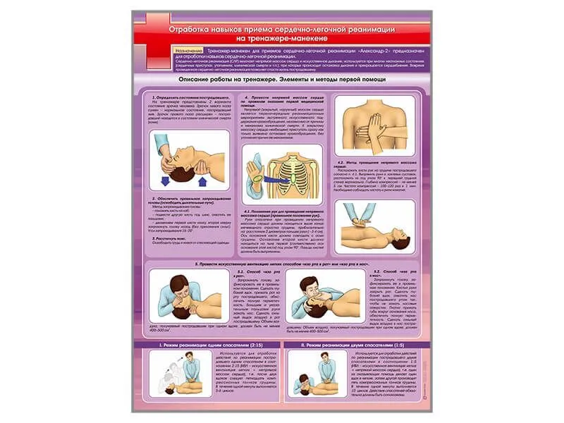 Информационный стенд по охране труда предназначен для наглядного и практического применения методов и приемов сердечно-легочной реанимации, представленных на тренажере-манекене.