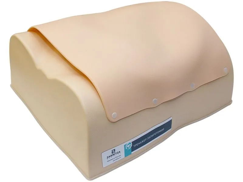 Тренажер лапаротомии — это детализированный анатомический фрагмент нижней части туловища человека, включающий печень с желчным пузырем, желудок, поджелудочную железу, селезенку, двенадцатиперстную кишку и предельно реалистичные органы тонкой и толстой кишки. Тренажер оснащен слоями кожи, подкожно-жировой клетчаткой и мышцами. Также предусмотрена смена брюшных стенок на нормальную или увеличенную от ожирения. Тренажер поставляется с полным набором реалистичных деталей, создающих впечатление настоящей хирургической процедуры при лапаротомическим доступе!