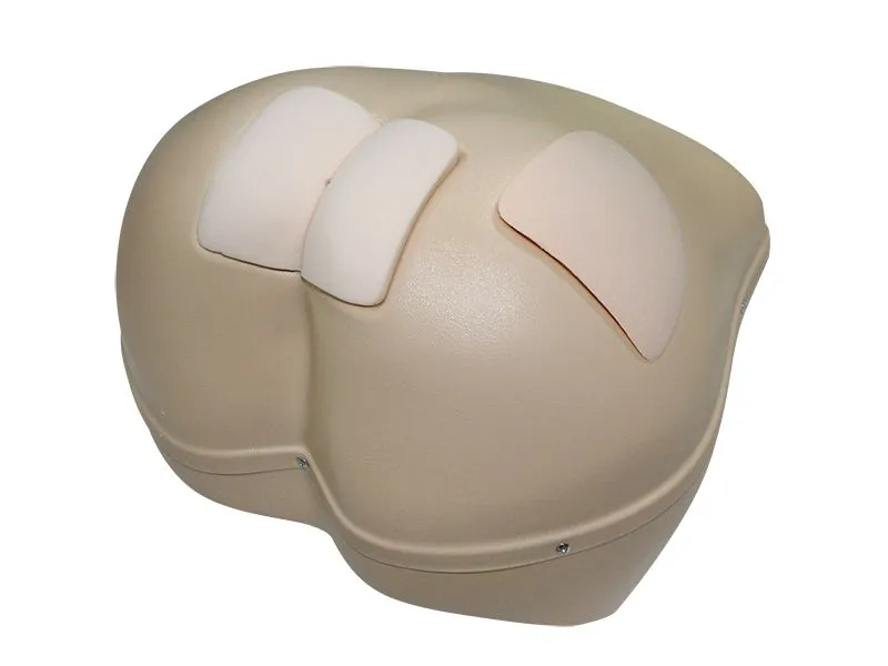 Материал, из которого выполнен тренажер для уколов в ягодицу, похож на человеческую кожу. Сама конструкция тренажера выполнена в максимально реалистичном виде, что позволяет приблизить учебную практику к реальной: так, в строении тренажера предусмотрено наличие прямой кишки с анальным отверстием для ввода клизм.