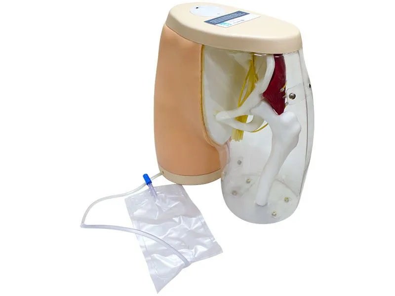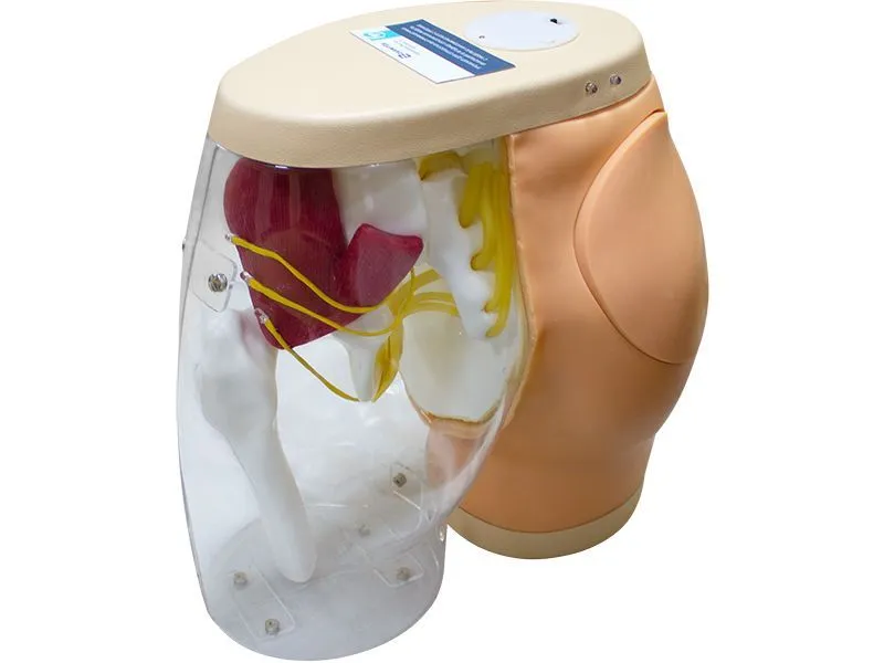 Конструкция тренажера внутримышечных инъекций прозрачна и позволяет изучать строение тазобедренной части тела человека. Подобное устройства манекена позволяет избежать ошибок в ходе практики ввода инъекций, т.к. наглядно демонстрирует места, (не)предназначенные для укола. Материал, из которого выполнен тренажер, позволяет «прощупать» место для введения шприца.
