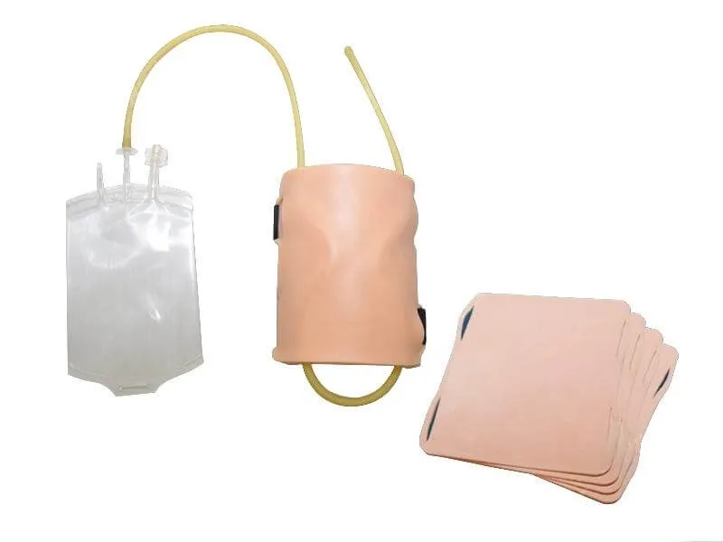 Особенностью тренажера для уколов в вену является наличие сменных накладок из силикона: так, при повреждении поверхности тренажера ее легко можно будет заменить! Кроме того, в комплекте идет система сбора жидкости, с которой можно отрабатывать навык забора крови.