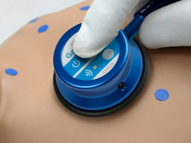 - Если прослушивание выполнено правильно, практиканты услышат соответствующий звук через стетоскоп или внешние динамики