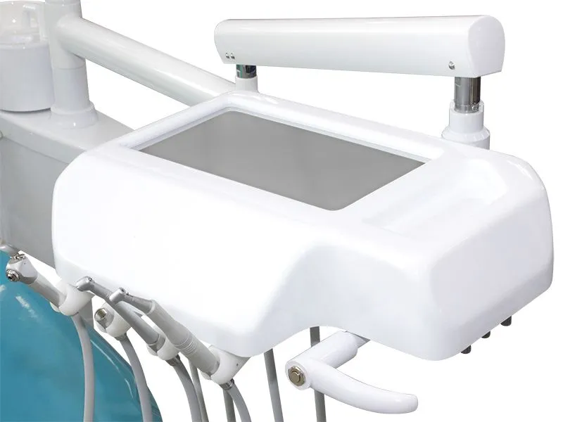 - Стоматологическая установка с верхней подачей инструмента, системой автономной подачи дистиллированной воды, таймингом системы омывания чаши.