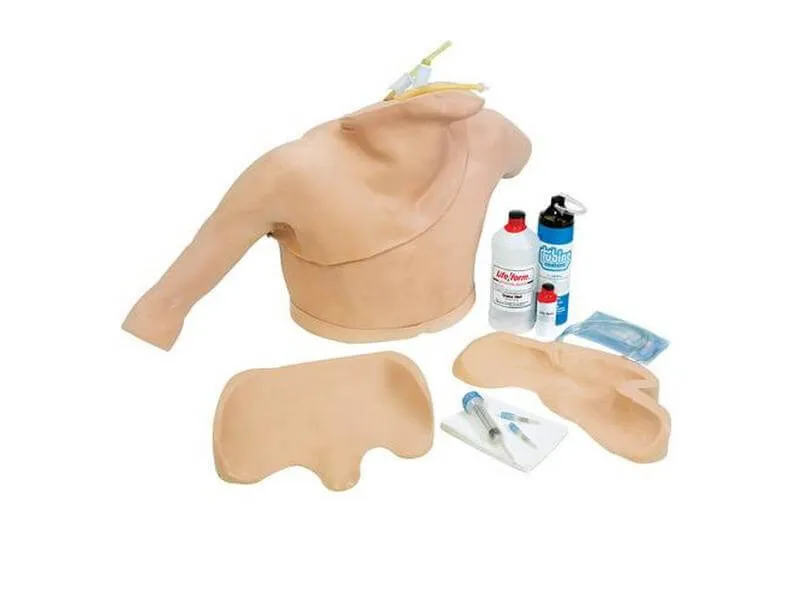 Для реалистического определения места введения катетера на тренажере катетеризации доступны для пальпации все необходимые ориентиры. С плеча можно удалить синтетический кожный слой для демонстрации разреза мышц и местоположения вен, артерий и других ориентиров.