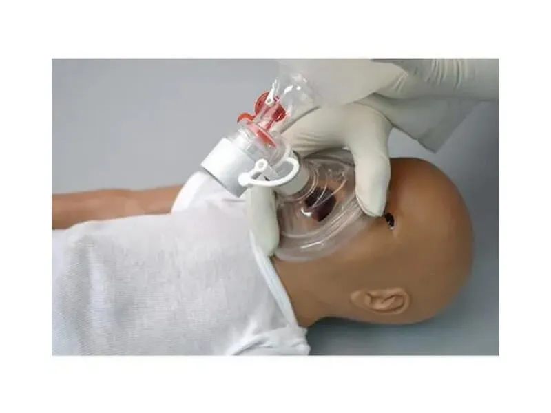 - При проведении искусственной вентиляции легких (ИВЛ) у манекена новорожденного ребенка реалистично поднимается грудь