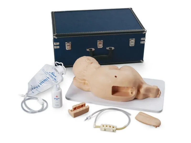 Медицинский тренажер для обучения люмбальной пункции у детей представляет собой 10-12-месячного младенца в положении лежа на левом боку с шеей и согнутыми коленями, приближенном к необходимому положению ребенка. Встроенный подвздошный гребень обеспечивает максимальную реалистичность, а съемный позвоночный столб, спинномозговой канал и кожная подушка делает обучение простым и легкодоступным.