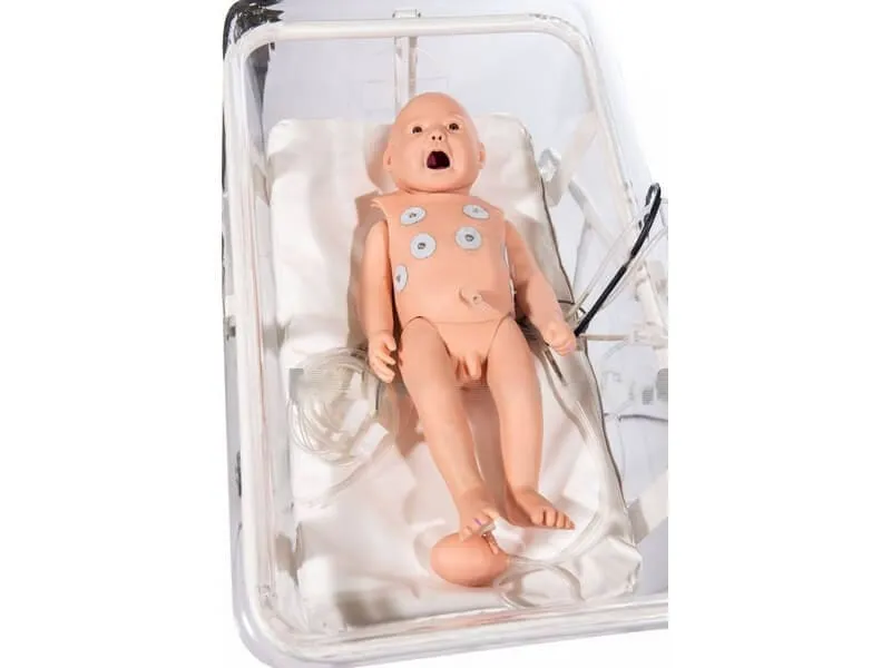 С помощью системы управления можно менять состояния манекена новорожденного ребенка («Здоров», «Критическое состояние», «Необходимо лечение») и фиксировать выполняемые манипуляции. К системе управления подключен электронный контроллер со встроенными симуляторами дефибриллятора, электрокардиографа (ЭКГ), пульсоксиметра (SPO2) и сфигмоманометра.