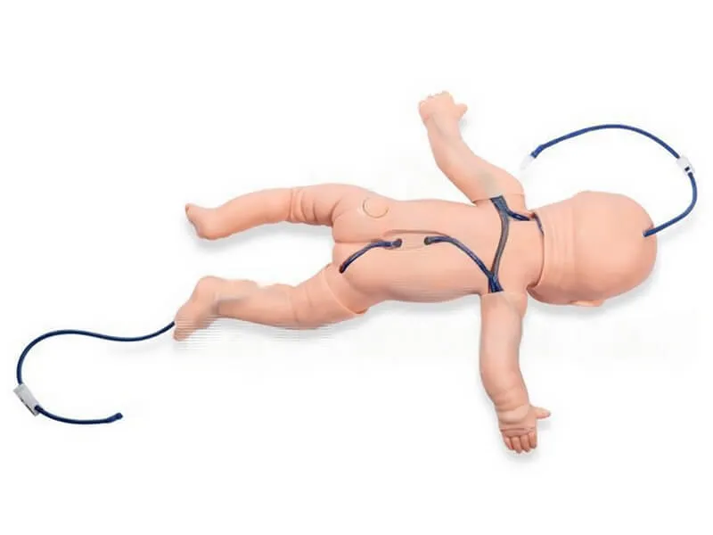 Также с тренажером-манекеном младенца Вы сможете практиковаться в уходе за пуповиной и в катетеризации пупочной вены.