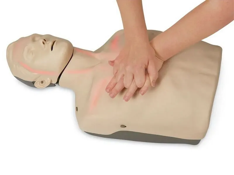 Манекен для сердечно-легочной реанимации представляет собой очень точную копию торса взрослого человека с детально проработанными анатомическими ориентирами: