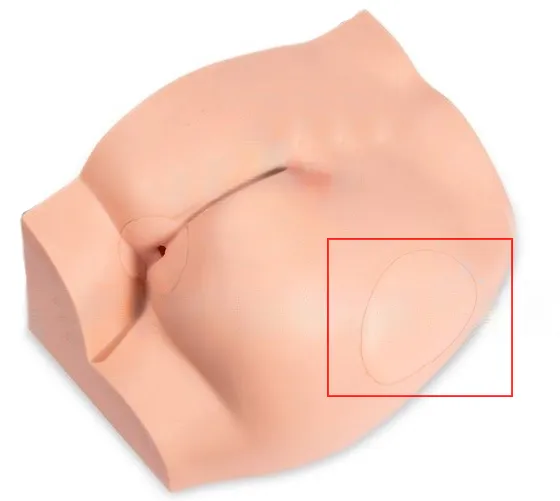 На тренажере отмечена область, специально предназначенная для выполнения инъекций. Это облегчает процесс тренировки и помогает сфокусироваться на конкретной практике.