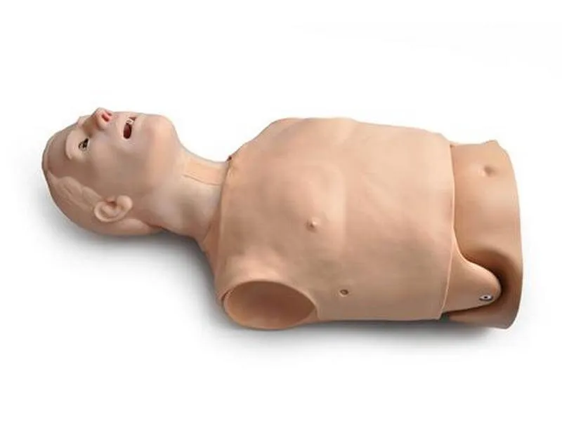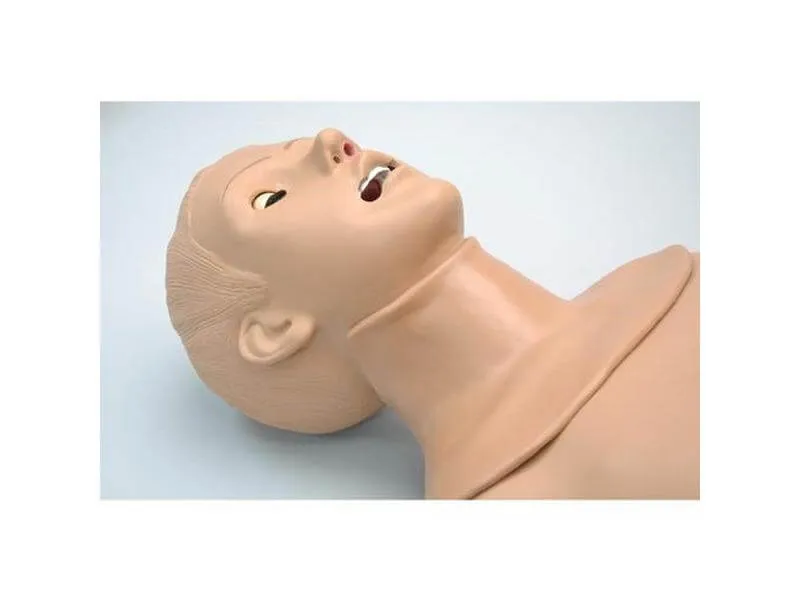 Тренажер интубации выполнен в виде верхней части мужского туловища с бронхами, легкими, сердцем, желудком и трахеями. Кроме того, он получил анатомически точное воспроизведение рта и языка, а также подвижные шейный отдел и челюсть.