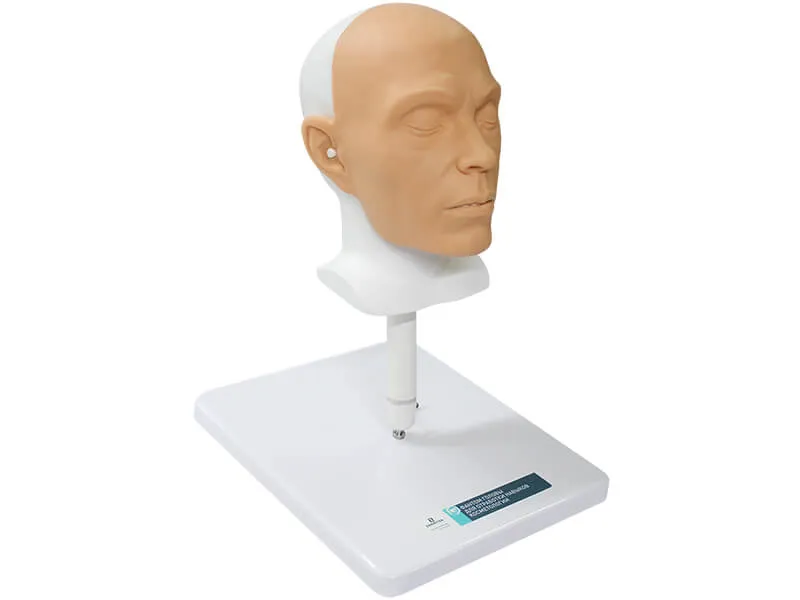 Модель тренажера включает костные ориентиры, различающуюся плотность в разных областях лица, а также различный уровень подкожных жировых слоев и видимые возрастные изменения кожи для многократных инъекций. Предназначена для отработки различных косметологических навыков.