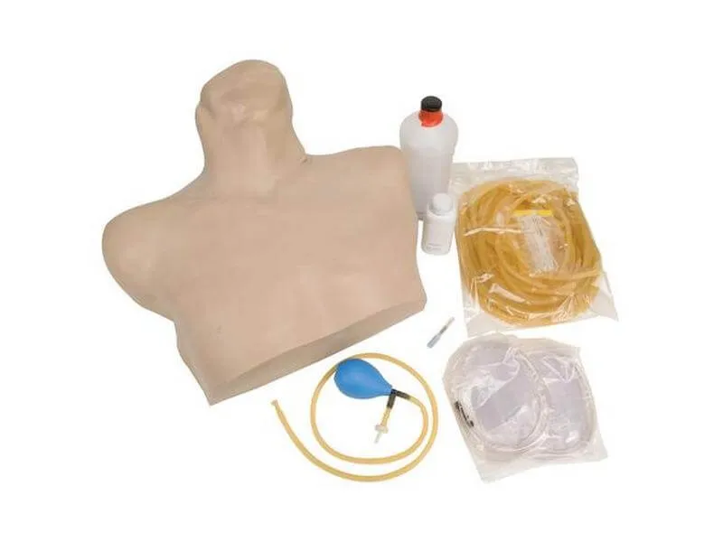 На этом медицинском тренажере для обучения можно изучать реалистичную канюляцию вен при несчастных случаях. Голова натурально исполненной верхней части туловища наклоняется в левую сторону.