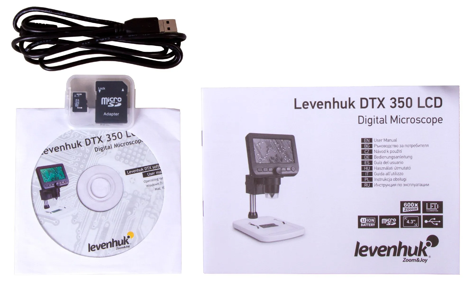 Levenhuk DTX 350 LCD – это цифровой микроскоп для всей семьи. Он прост в управлении, дает возможность вести наблюдения на малом или большом увеличении, отлично подходит для изучения объемных объектов (камней, семян, монет, насекомых). Микроскоп можно использовать для профессиональной деятельности, домашнего хобби, обучения школьников основам естествознания.
