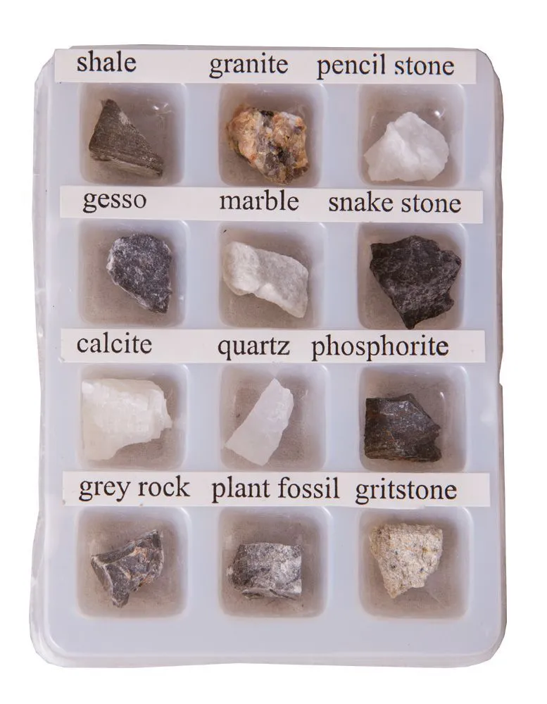 В комплекте идут 12 минералов для изучения.