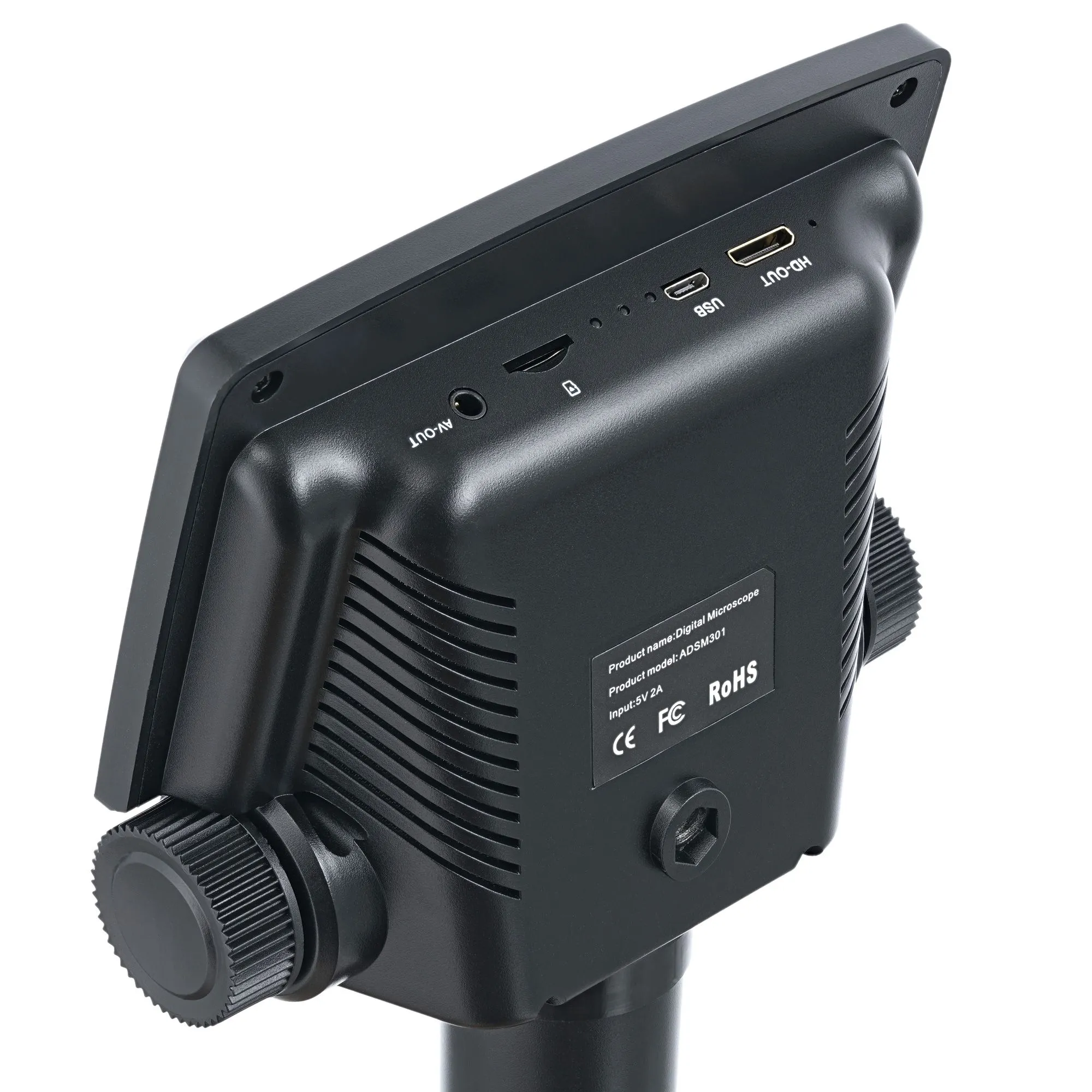 Микроскоп обеспечивает приближение в диапазоне от 5 до 260 крат. Это цифровое увеличение, оптическое же составляет от 5 до 15 крат. Картинка с объектива выводится на цветной встроенный ЖК-экран с диагональю 5 дюймов (12,7 см). Изображение четкое, контрастное, с хорошей детализацией. Для вывода на внешние экраны используются порты HDMI и AV.