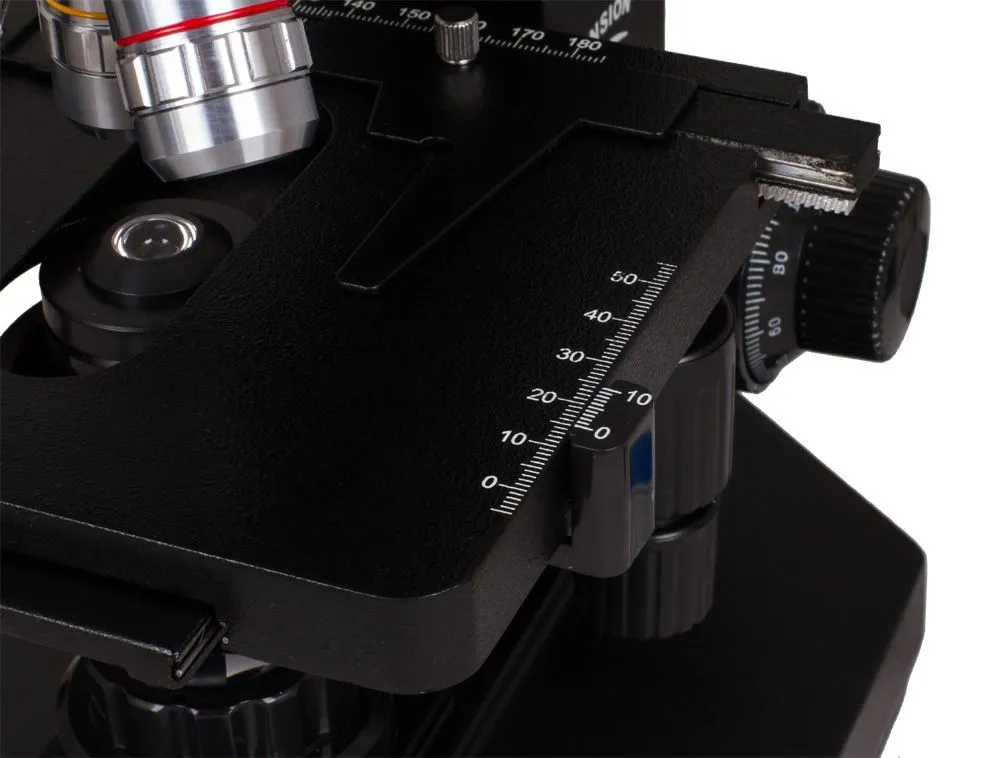 Фокусировка микроскопа Levenhuk 870T производится за счет винтов грубой и точной настройки резкости. Рукоятки фокусировки позволяют перемещать предметный столик в вертикальной плоскости для точного наведения резкости, объектив же остается неподвижным. Столик перемещается и в горизонтальном направлении, так как он двухкоординатный. Благодаря мягкому движению фокусировки и механизма перемещения столика все настройки меняются плавно, без рывков. Дополнительное удобство позиционирования препарата обеспечивает правосторонний препаратоводитель.