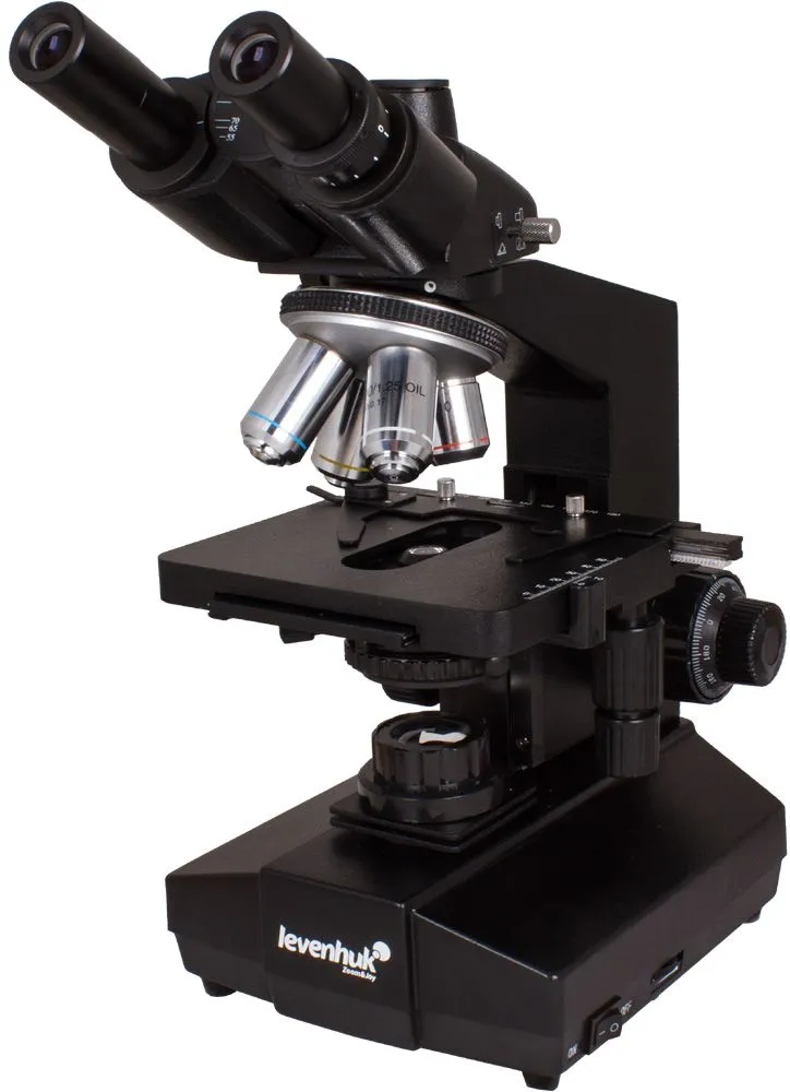Levenhuk 870T — надежный тринокулярный биологический микроскоп, с помощью которого производится весь спектр наблюдений в светлом поле. Широко используется в медучреждениях разного типа для урологических, дерматологических, биологических, биохимических, патологоанатомических, цитологических и общеклинических лабораторных исследований. А поскольку это тринокуляр, в комплекте с камерой-окуляром (приобретается отдельно) его можно без проблем использовать в качестве цифрового микроскопа.