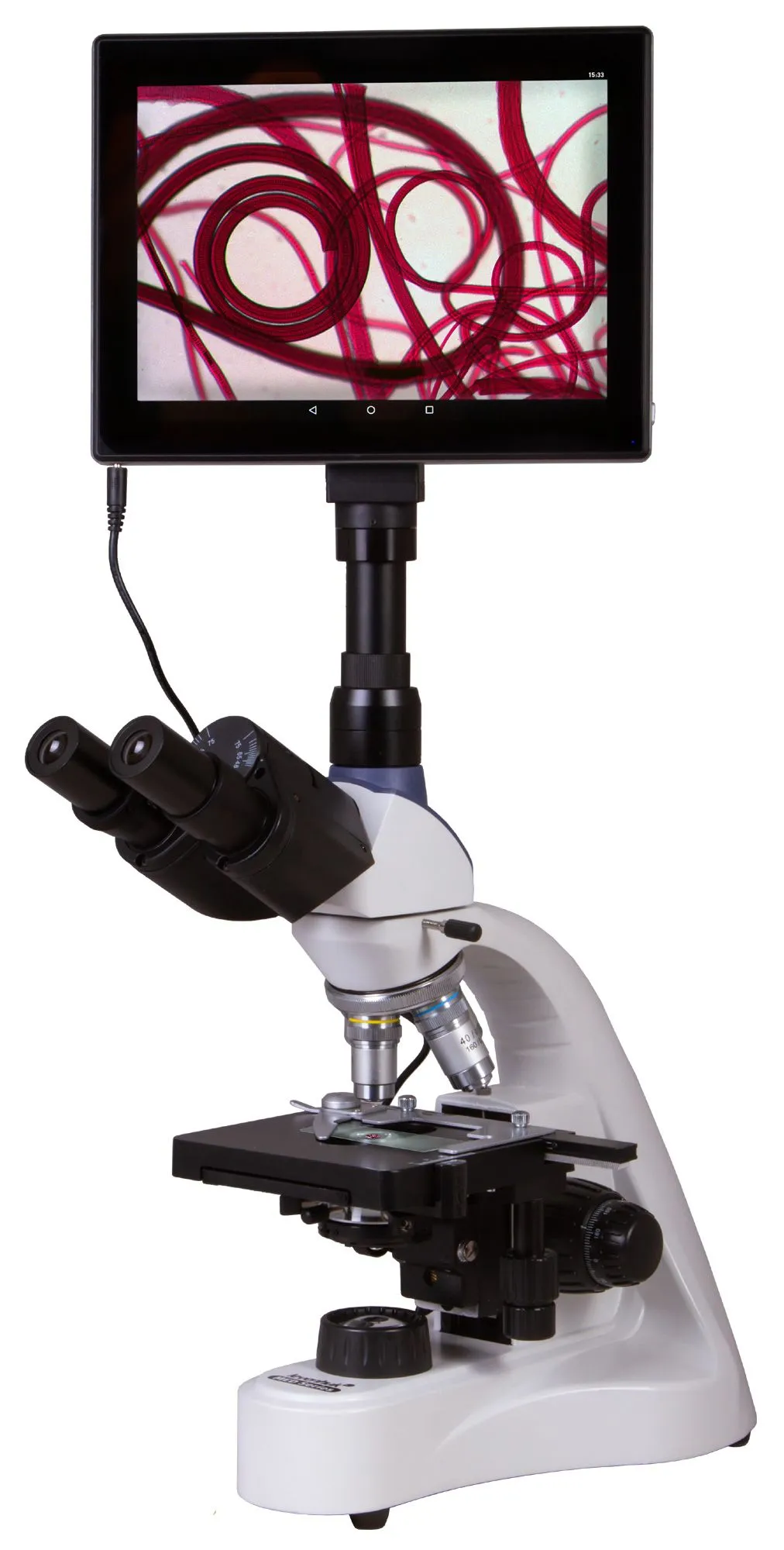 Камеры Levenhuk устанавливаются в окулярную трубку вместо окуляра. Микроскоп также совместим с любыми другими цифровыми камерами для микроскопов.
