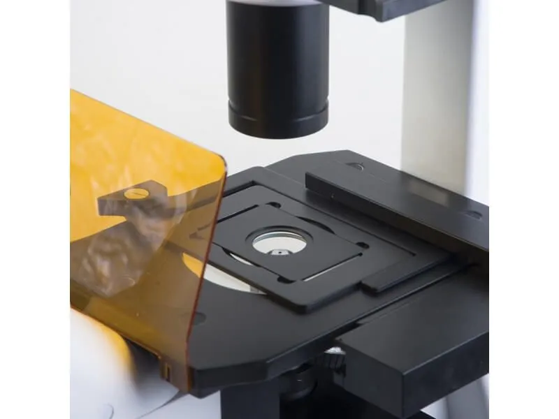 В люминесцентый модуль установлены 2 стандартных кубика люминесценции (голубой и зеленый). Третья открытая позиция позволяет быстро переходить пользователю с метода флуоресценции на метод светлого поля.