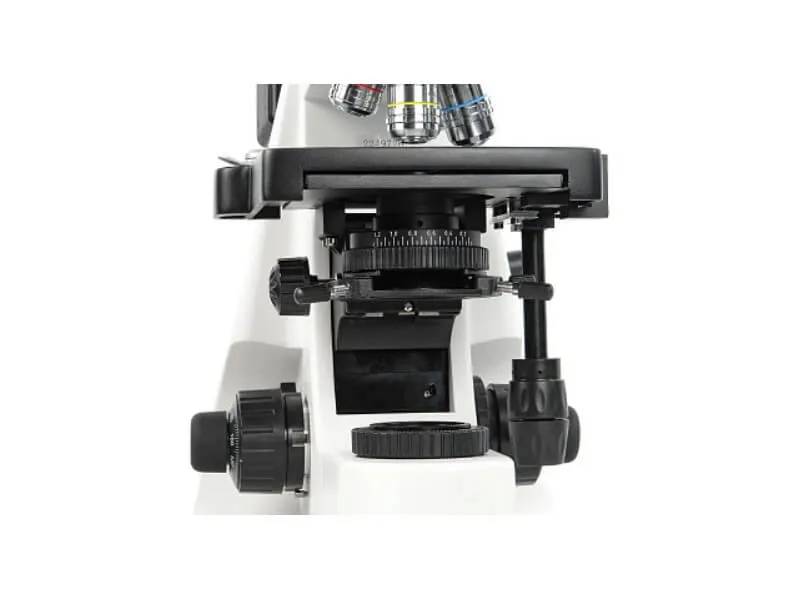 Штатив (со встроенным в основание осветителем проходящего света с галогенной лампой 12В, 30Вт и источником питания) - 1Насадка тринокулярная ICO Infinitive поворотная на 360º с наклоном на 30º - 1Револьвер на 4 позиции объективов - 1 - Установлен на штативеСтолик прямоугольный (180х150мм) координатный (90х60мм) - 1 - Установлен на штативе