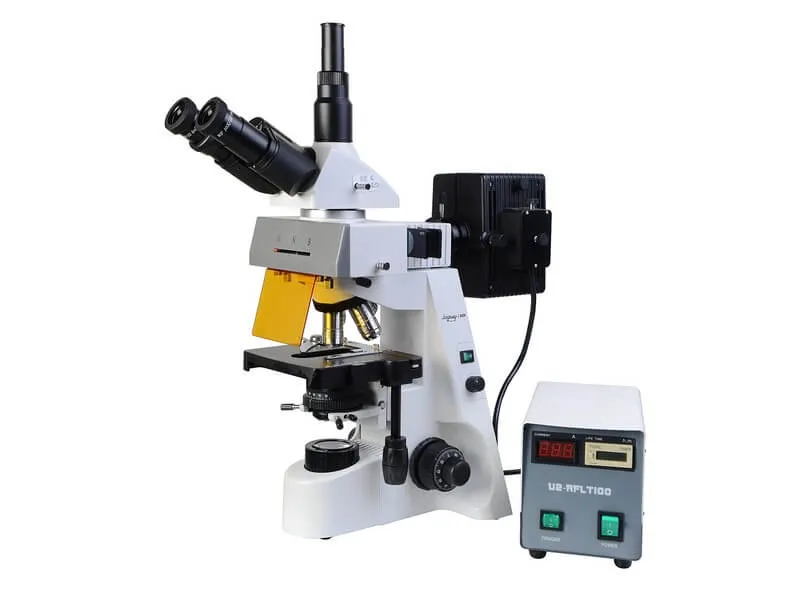 В комплект микроскопа входят два люминесцентных блока (синий и зеленый):
