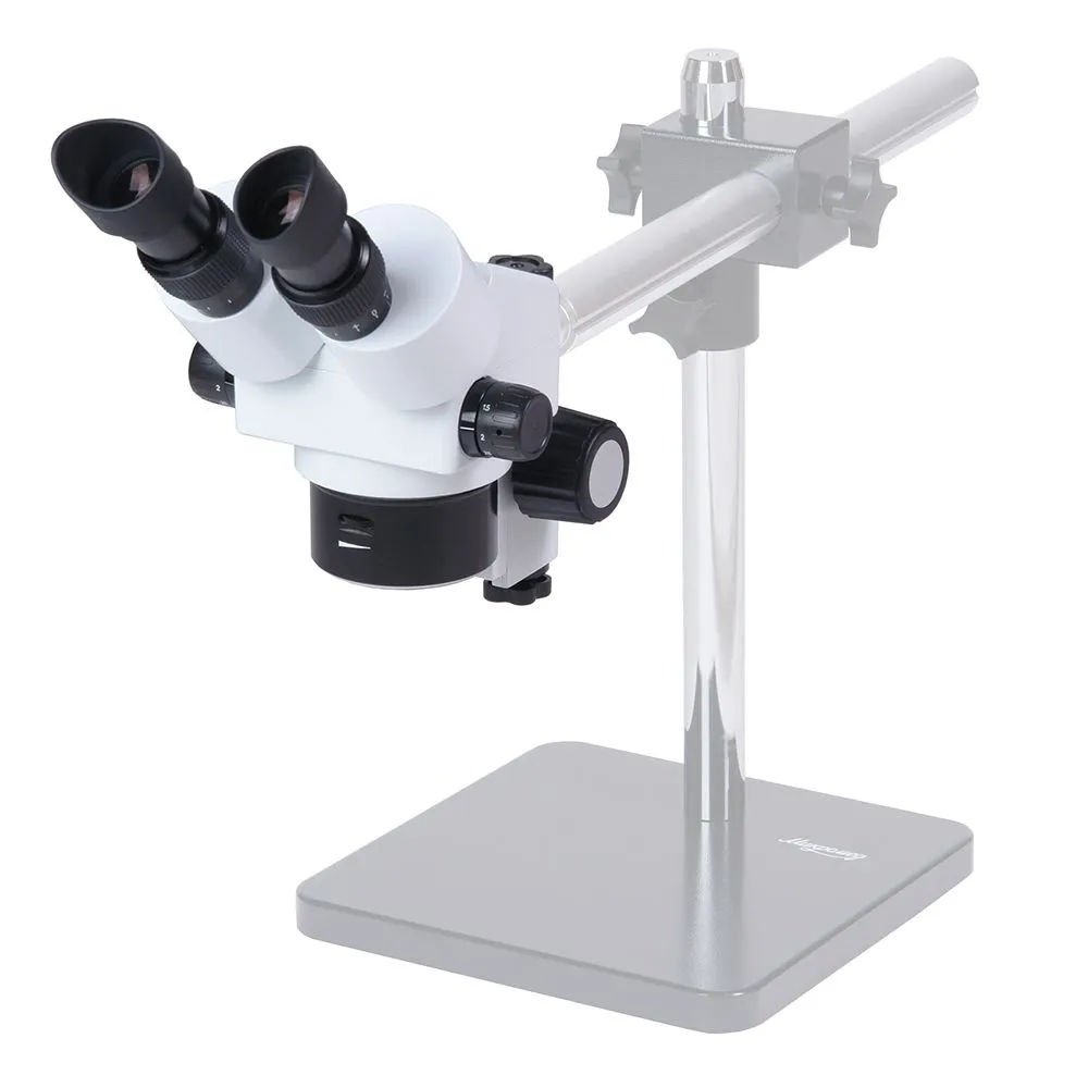 Бинокулярная оптическая головка устанавливается на стандартный штатив стереомикроскопа Микромед - штативы TD-1,TD-3, TD-4 (штативы не входят в комплект головки). Увеличение 7,5-50 (при дополнительной комплектации 1,85-250). Рабочее расстояние 113 мм (при дополнительной комплектации 177, 50, 35 мм). Источник света - встроенный кольцевой светодиодный осветитель отраженного света с регулировкой яркости.