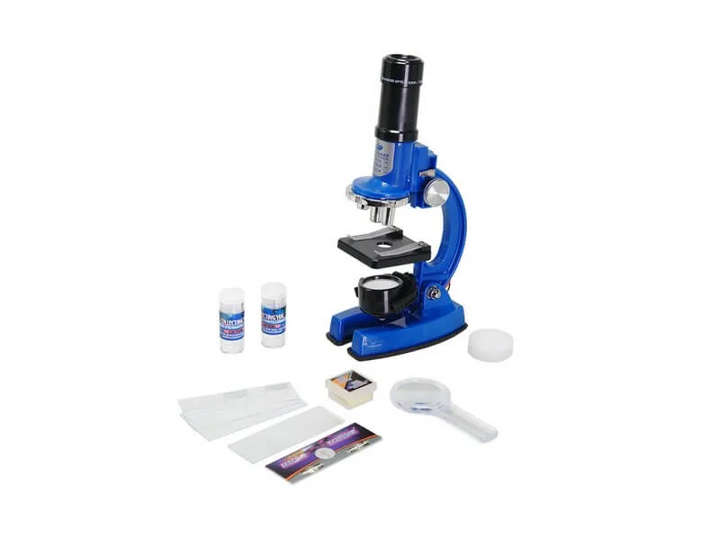 Отличный подарок для ребёнка, желающего погрузиться в увлекательный мир микробиологии. Микроскоп располагает осветителем с двойным действием – когда он повёрнут зеркалом вверх, освещение происходит путём солнечного света. Один поворот, и вот у вас уже освещение от лампы, встроенной в другую сторону осветителя (батарейки в комплект не входят). Это может быть полезно при пасмурной погоде или при отсутствии достаточного освещения в комнате.