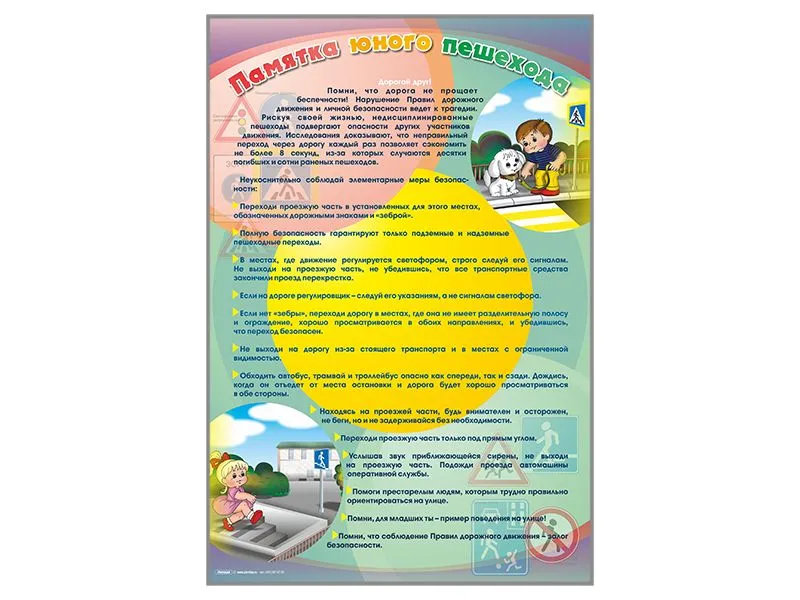 Памятка юного пешехода, выполненная в виде стенда, призвана познакомить детей всех возрастов с основными правилами дорожного движения.