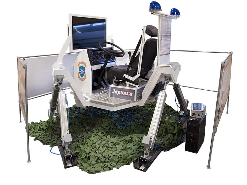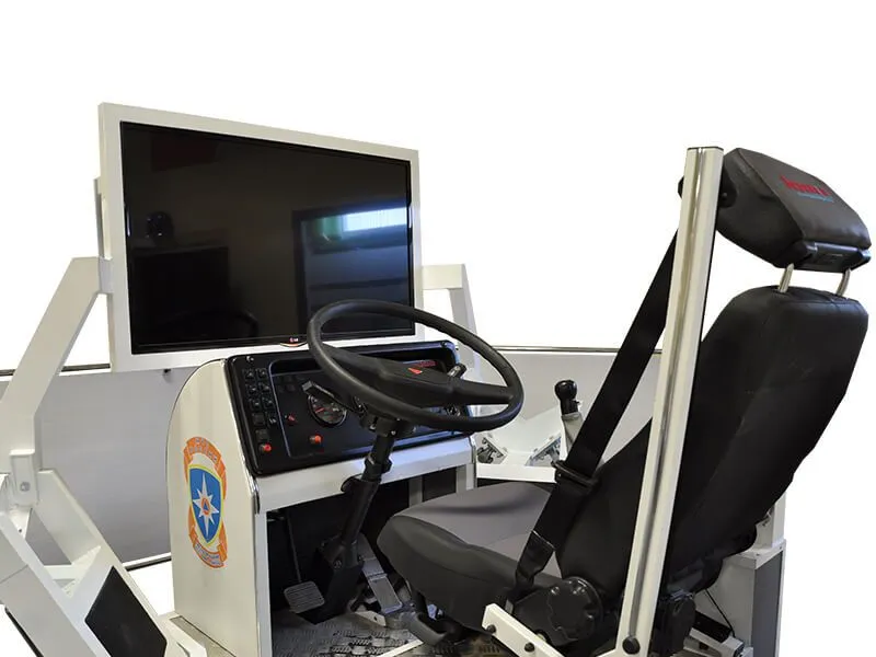Автотренажер-симулятор вождения выглядит как рабочее кресло водителя пожарной машины. Система тренажера предусматривает мобильность кресла водителя: так, оно может перемещаться вперед/назад, вверх/вниз, вправо/влево, внося в тренировку изрядную долю реализма! Автотренажер поможет в подготовке водителей категории «С» МЧС и подразделений гражданской обороны!