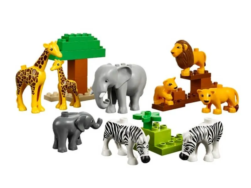 Симпатичные фигурки животных и различные элементы для оформления декораций позволят малышам познакомиться с жизнью диких животных и устроить для каждого из них подходящее жилище. Всего набор включает в себя 104 элемента.